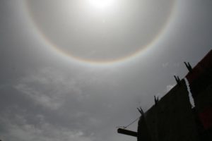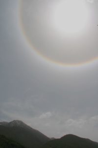 Today we looked into the sky and beheld the most amazing sight! I had never seen this before, and we all didn’t know if this was a normal occurrence in nature, or something unique to this area of the world? Later that evening, when we had time to check it out, we read the following explanation for the halo we saw around the sun: